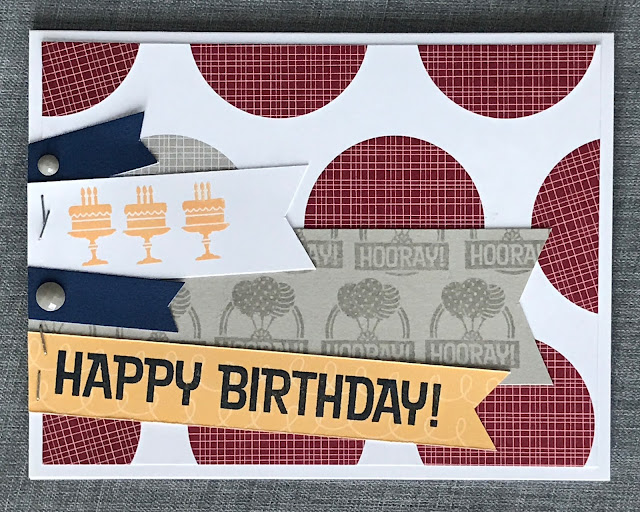 I've been using the Sugar Rush Paper Packet to make cards for a card buffet at the end of this month. You'll see almost all of the papers in this pack on these cards along with new stamps, tools and embellishments. There are also items from the Annual Inspirations on these cards. Here you go.